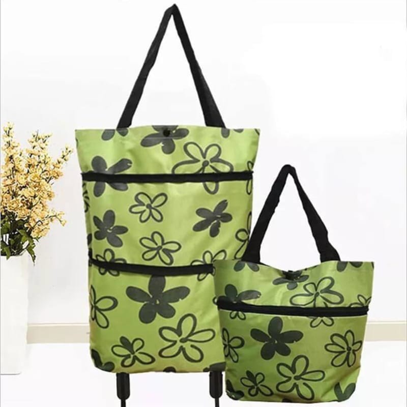 مصممة بعجلات وأقدام حاملة، والتي يمكن طيها في حقيبة يد، صغيرة وخفيفة الوزن. كما يمكن أن تفتح لاستخدامها كحقيبة أو عربة تسوق لنقل حوامل المقتنيات شديدة التحمل.